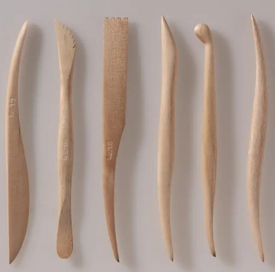 Muotoilutyökalulajitelma Nr. 1 on monipuolinen kuuden muotoilutyökalun setti, joka on valmistettu hiotusta ja kiillotetusta koivusta. Jokainen työkalu on noin 15 cm pitkä, ja niissä on kaksi erilaista työskentelypäätä, jotka tarjoavat runsaasti mahdollisuuksia saven ja muiden muovailumateriaalien työstämiseen.