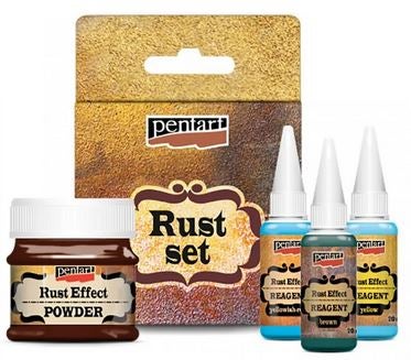 Pentart Rust Effect Set on täydellinen setti, jonka avulla voit luoda aidon näköisen ruoste-efektin erilaisille pinnoille ja projekteihin. Setti sisältää useita tuotteita, joiden yhdistelmällä syntyy realistinen ruosteen tuntu ja ulkonäkö – ihanteellinen niin taiteeseen, askarteluun kuin sisustusprojekteihin.